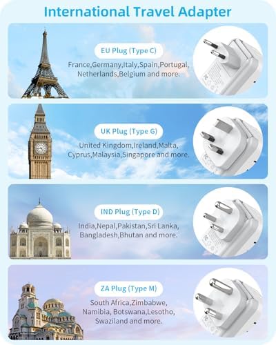 – Compatibility: Type G (UK), Type C (EU), Type M (South Africa), Type D (India)