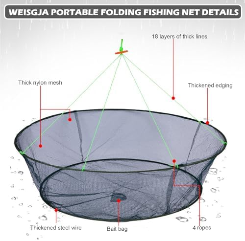 – **Multi-Purpose Use**: Ideal for crabbing, shrimping, and trapping small fish, this versatile net is a must-have for any fishing enthusiast. It’s perfect for freshwater or saltwater environments, making it suitable for various fishing styles.
